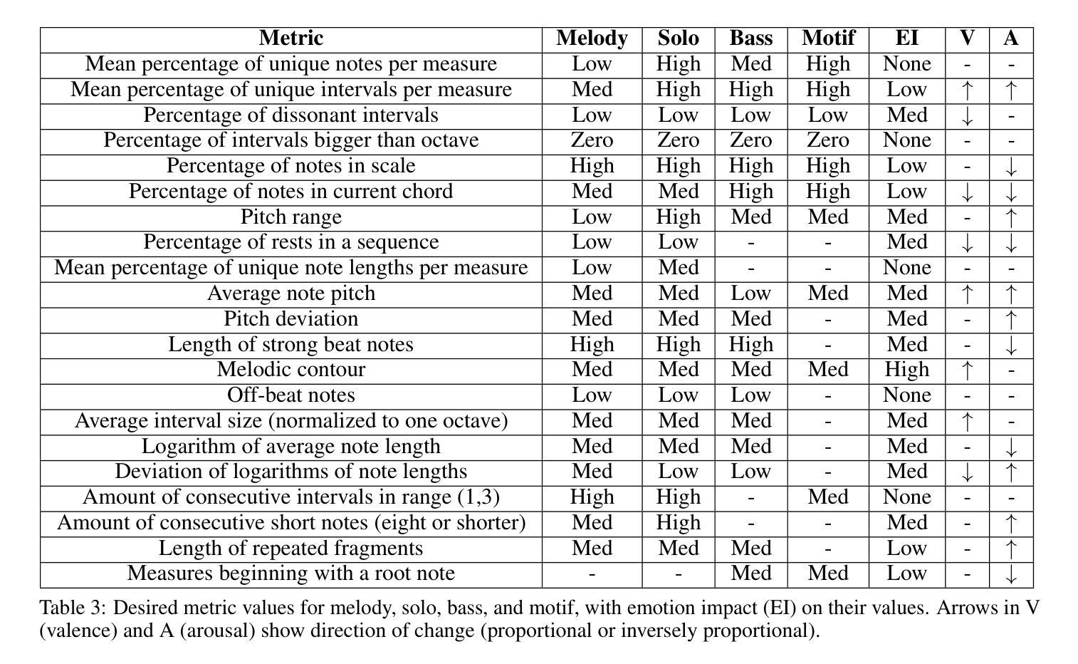 该工作介绍了M6(GPT)3作曲系统,该系统可根据自然语言描述生成完整、多分钟的音乐作品,具有复杂的结构并能适应任何的时间签名。系统采用自回归转换器语言模型,将自然语言提示映射到JSON格式的创作参数上。通过遗传算法生成旋律元素,结合音乐意义的突变和基于正态分布及预定义音乐特征值的适应度函数。系统可生成任何时间签名的打击乐,采用概率方法,包括马尔可夫链。评估结果表明,该音乐生成方法在某些音乐相关指标上优于基线方法,是纯粹基于神经网络系统的可行替代方案。