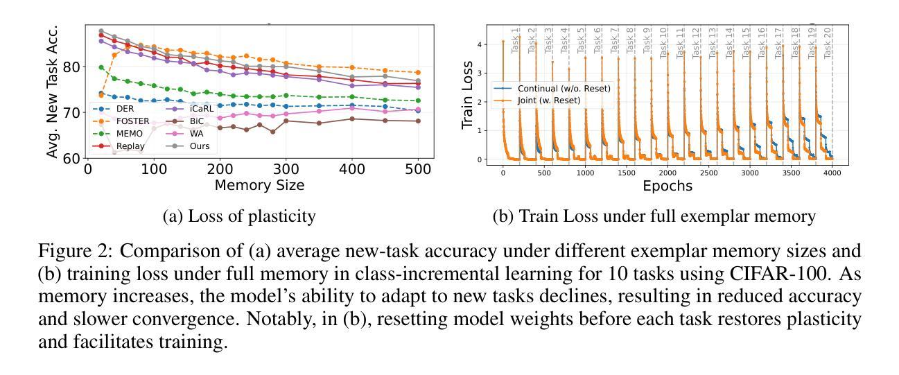 - 在这种现实情况下,模型面临的主要挑战从稳定性转向了可塑性,因为模型偏向于先前的任务并难以学习新任务。