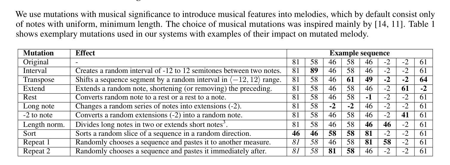 - 采用遗传算法生成旋律元素,结合音乐意义的突变和适应度函数。