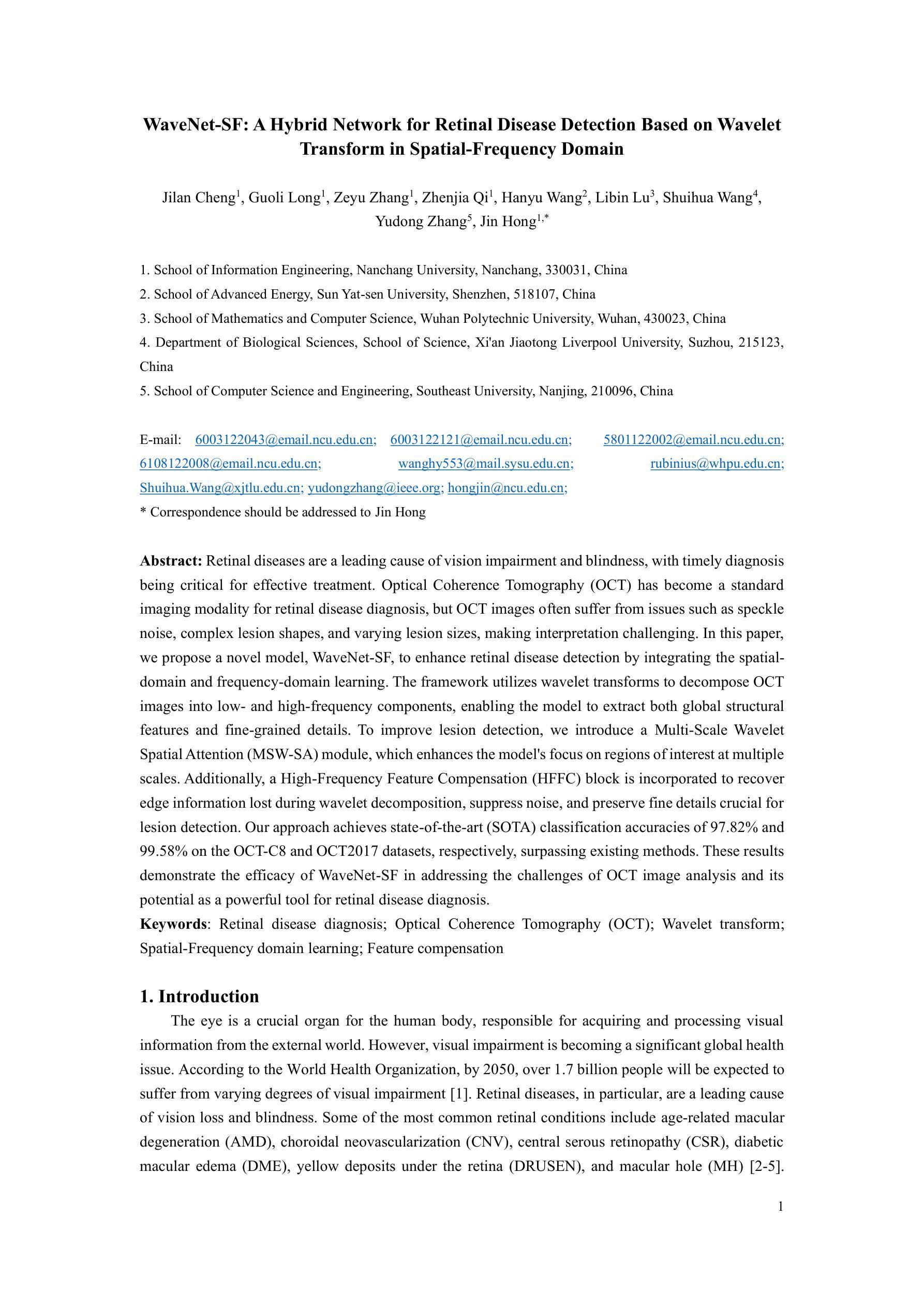 - 提出了新的框架WaveNet-SF,结合空间域和频率域学习,以提高视网膜疾病的检测。