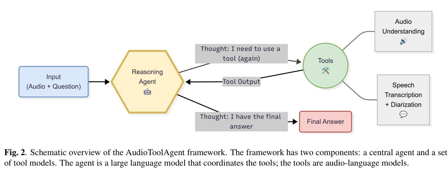 - AudioToolAgent框架利用LLM代理协调音频语言模型工具,提高了音频理解任务的性能。