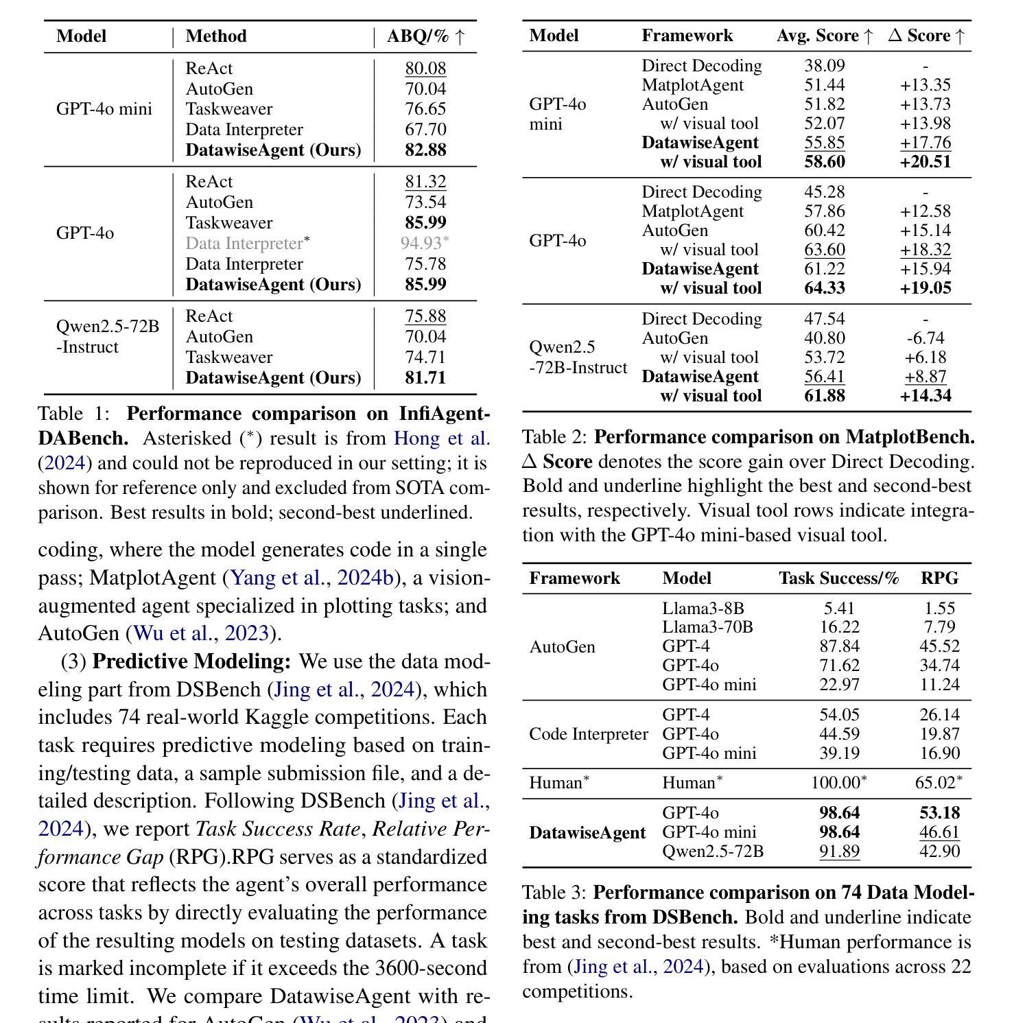 - DatawiseAgent能够支持从弱模型到强模型的性能退化,显示了其稳健性。