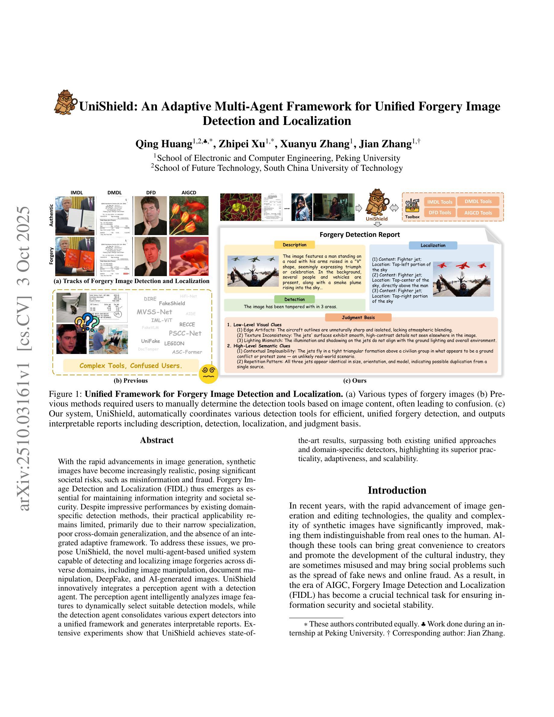 - UniShield是一个基于多智能体的统一系统,可在多个领域检测并定位图像伪造。