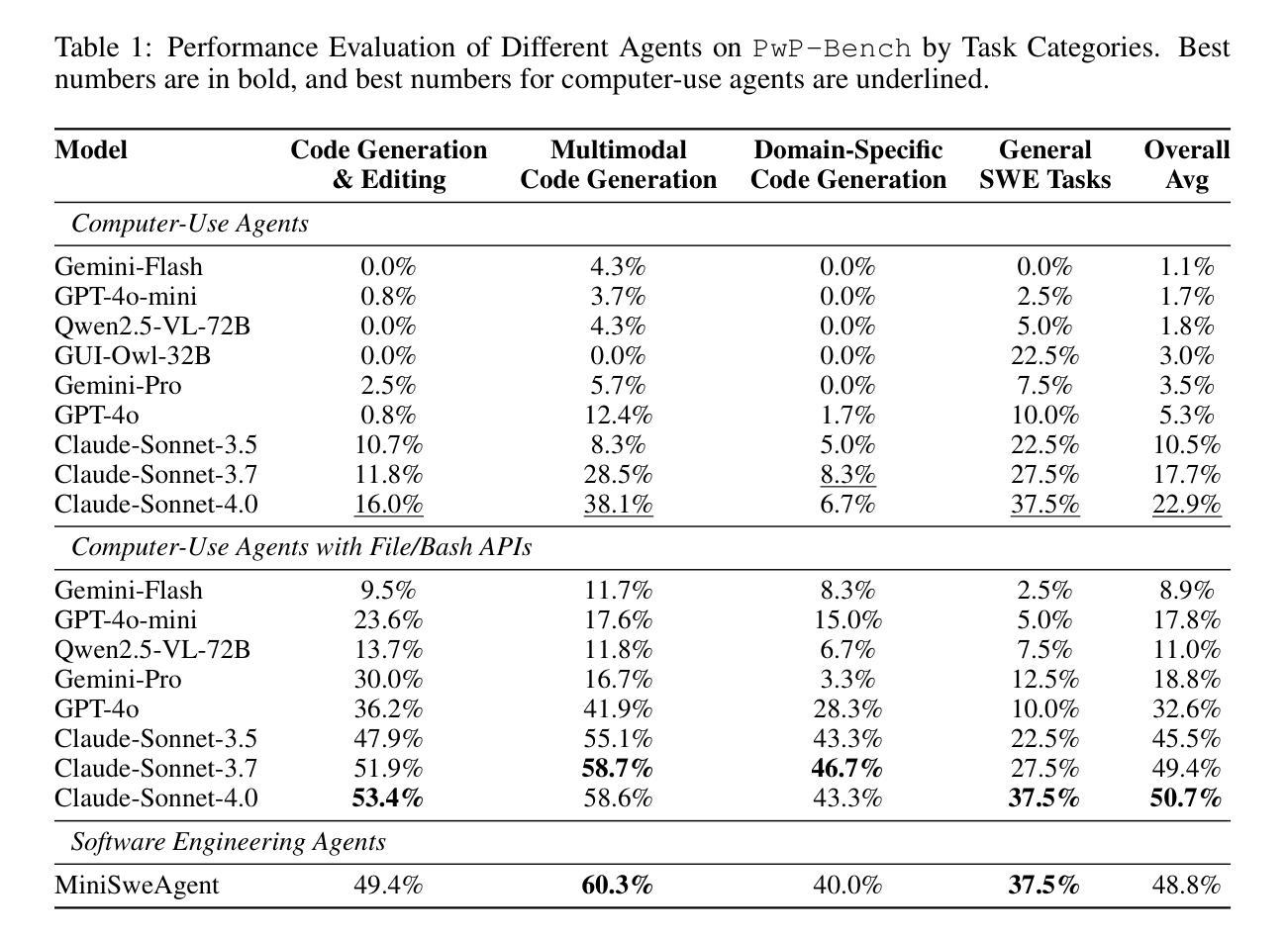 - 引入了PwP-Bench基准测试,包含多种软件工程任务的基准测试。