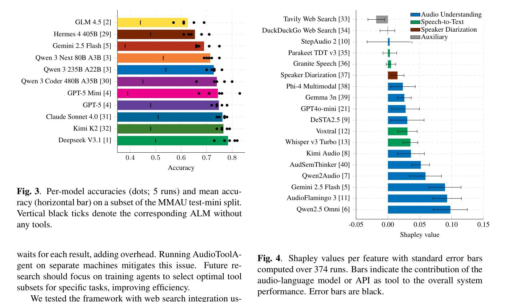 - 实验结果表明,AudioToolAgent在MMAU、MMAR和MMAU-Pro任务上达到了最先进的准确性,最高达到74.10%、68.80%和57.96%。