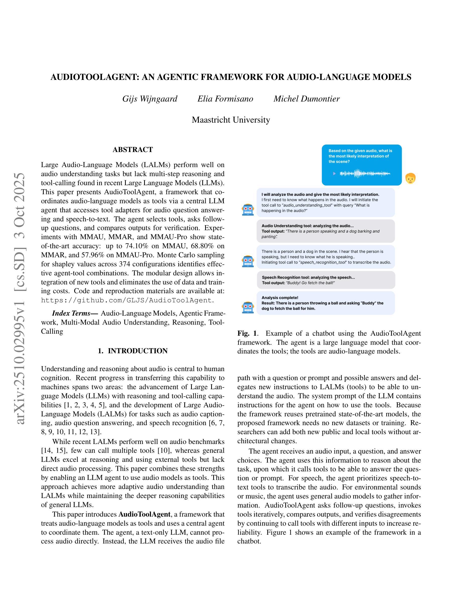 - AudioToolAgent框架利用LLM代理协调音频语言模型工具,提高了音频理解任务的性能。