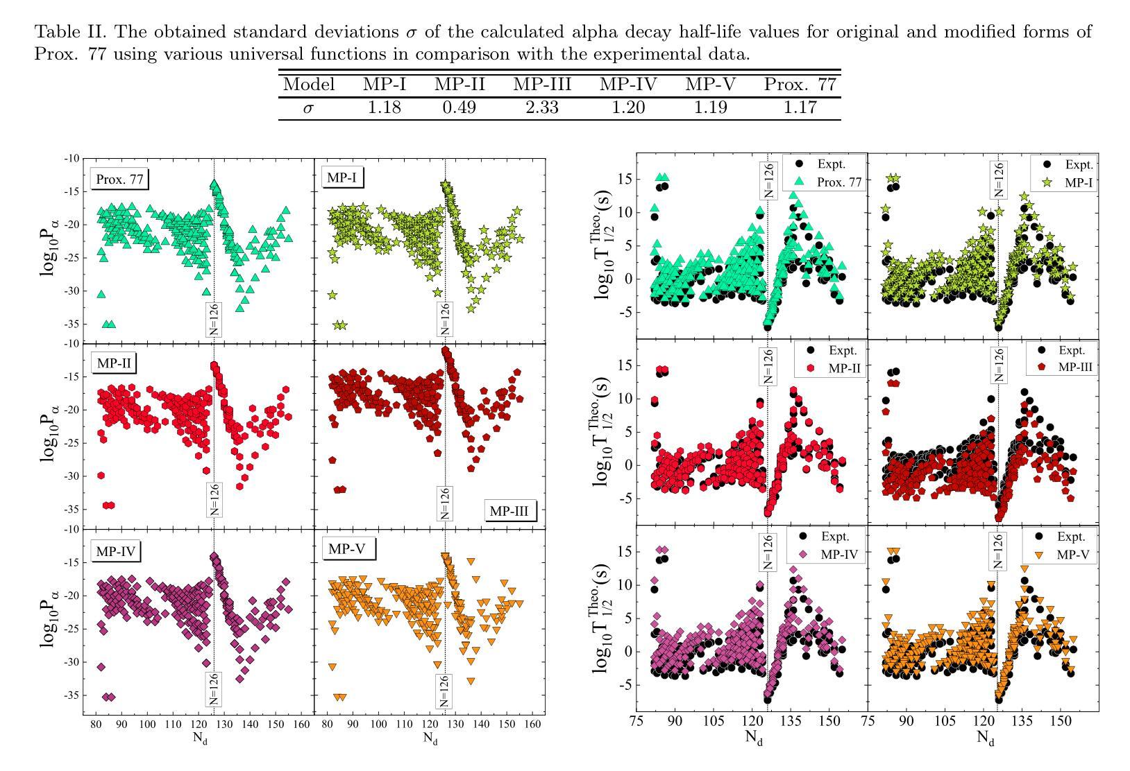 - Prox. 77与Guo 2013通用函数组合为α衰变提供了最佳数据拟合。