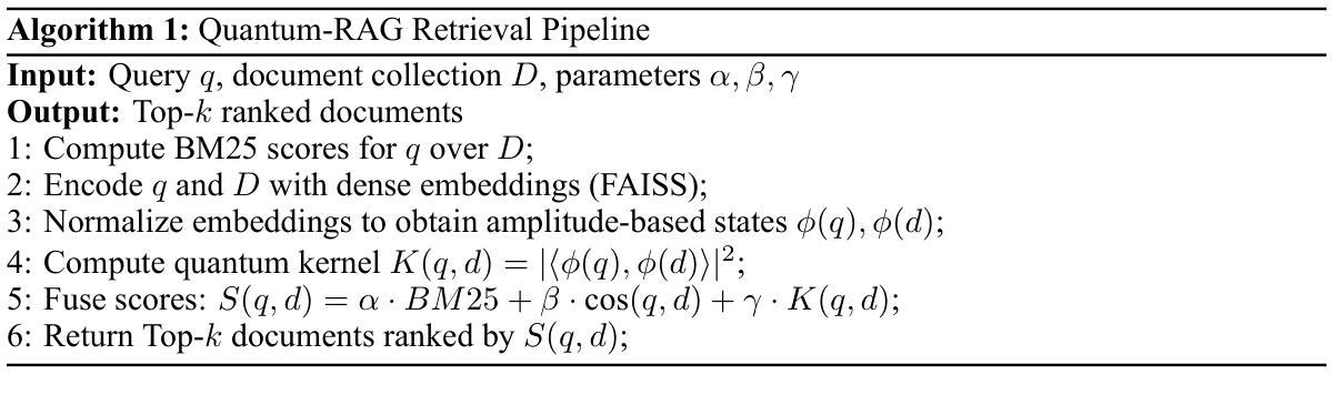 - Quantum-RAG融合了稀疏、密集和量子核嵌入,实现了高效检索和内存低消耗。