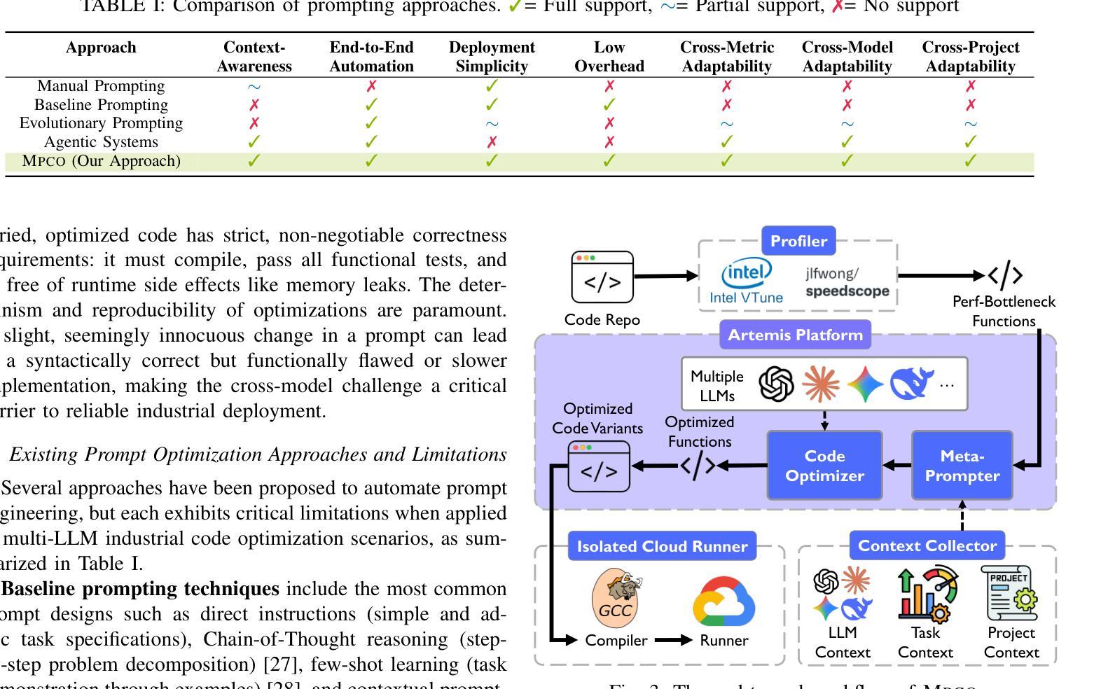 该文本介绍了如何利用多个大型语言模型(LLM)进行自动化代码优化的问题。针对部署多个LLM的工业平台面临的关键挑战,即针对一个LLM优化的提示在其它LLM上经常失效,需要昂贵的模型特定提示工程。为此,引入了Meta-Prompted代码优化(MPCO)框架,该框架能够自动生成高质量的任务特定提示,适用于不同的LLM,同时满足工业效率要求。MPCO利用元提示技术,通过整合项目元数据、任务要求和LLM特定上下文,动态合成上下文感知的优化提示。它是ARTEMIS代码优化平台的重要组成部分,用于自动化验证和扩展。在五个真实世界代码库上的综合评估显示,MPCO总体上提高了高达19.06%的性能,并且在所有系统中表现最佳。分析表明,96%的最佳优化来自于有意义的编辑。通过系统的剖析研究和元提示敏感性分析,发现全面的上下文整合对于有效的元提示至关重要,主要LLM可以有效地作为元提示器,为工业从业者提供可操作的见解。