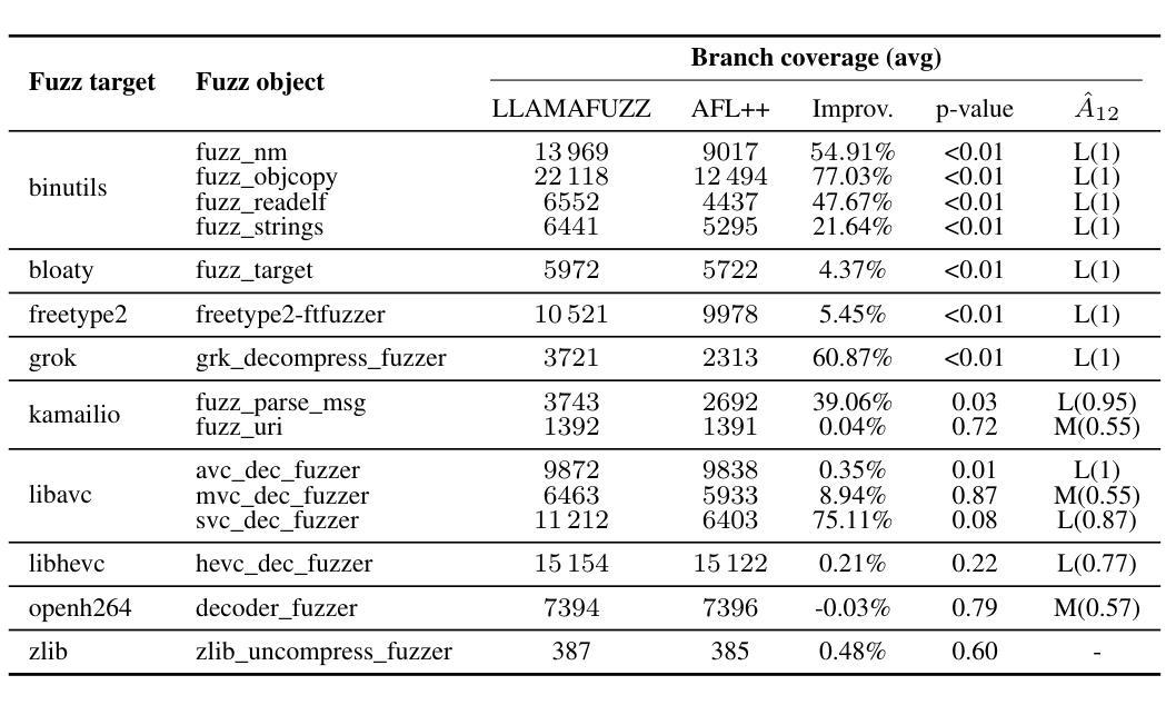 - LLAMAFUZZ通过结合LLM的能力,提高了模糊测试过程中的代码覆盖率。