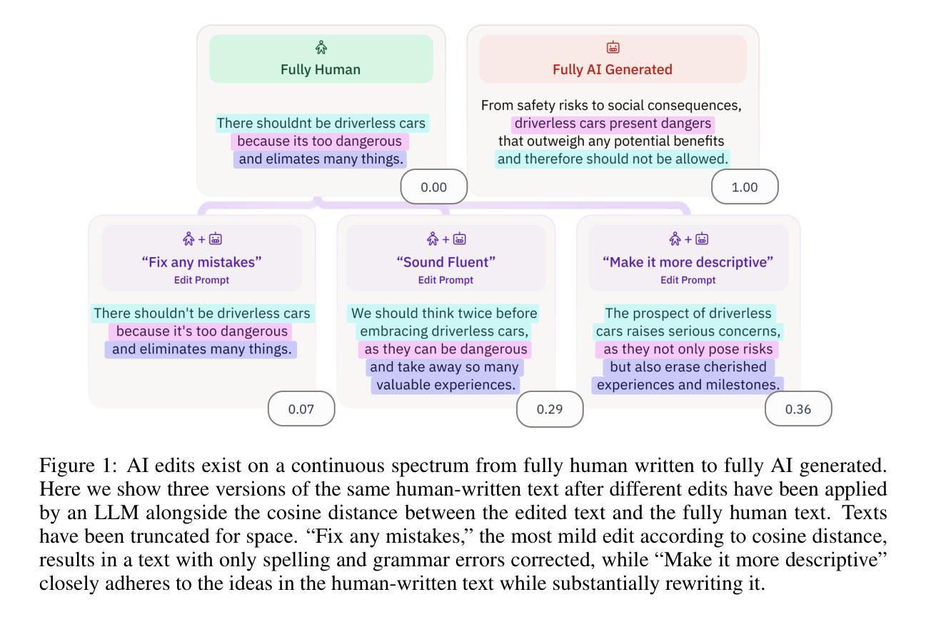 - 提出了使用轻量级相似度指标来衡量原始人类文本中AI编辑的程度。