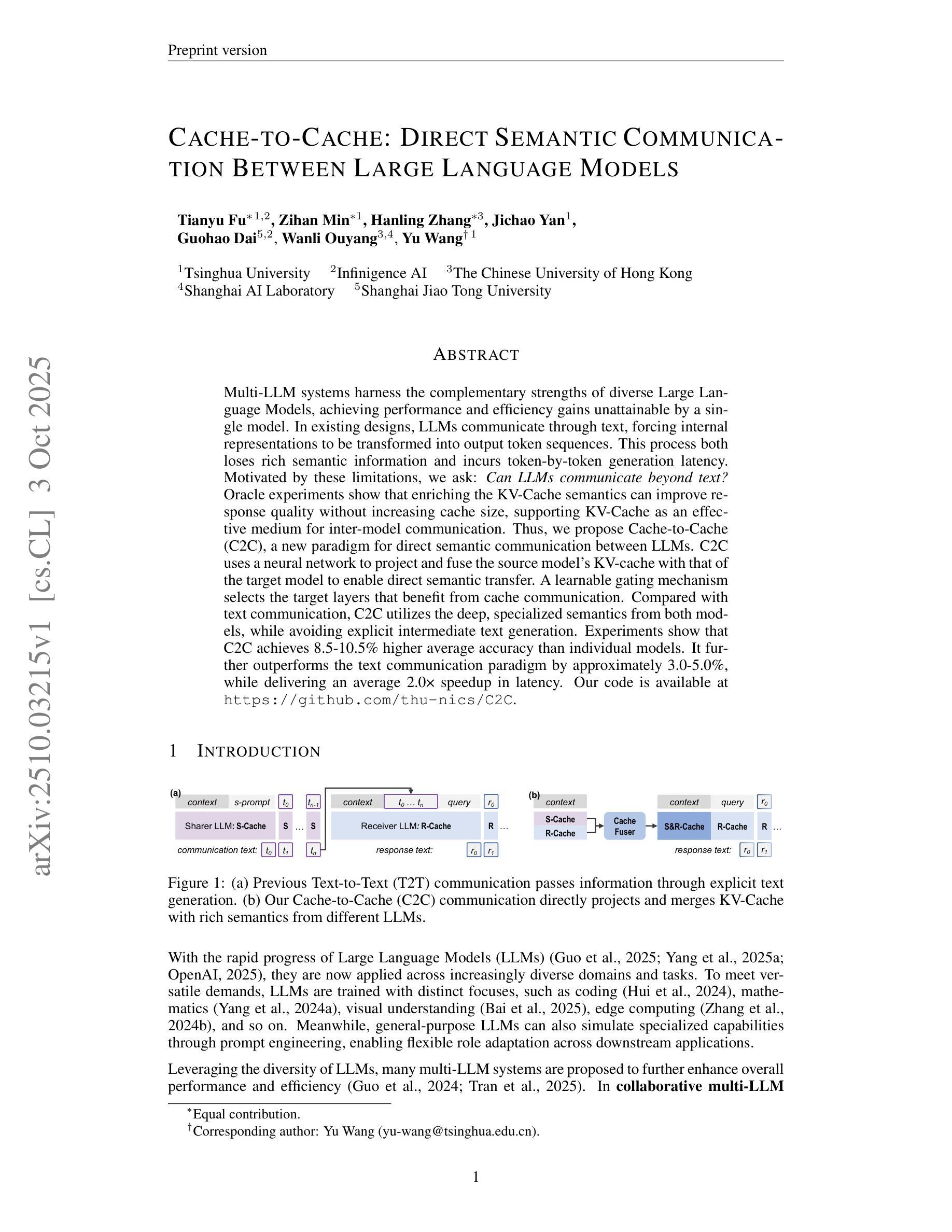 - Cache-to-Cache(C2C)通信范式可实现LLM间的直接语义交流。