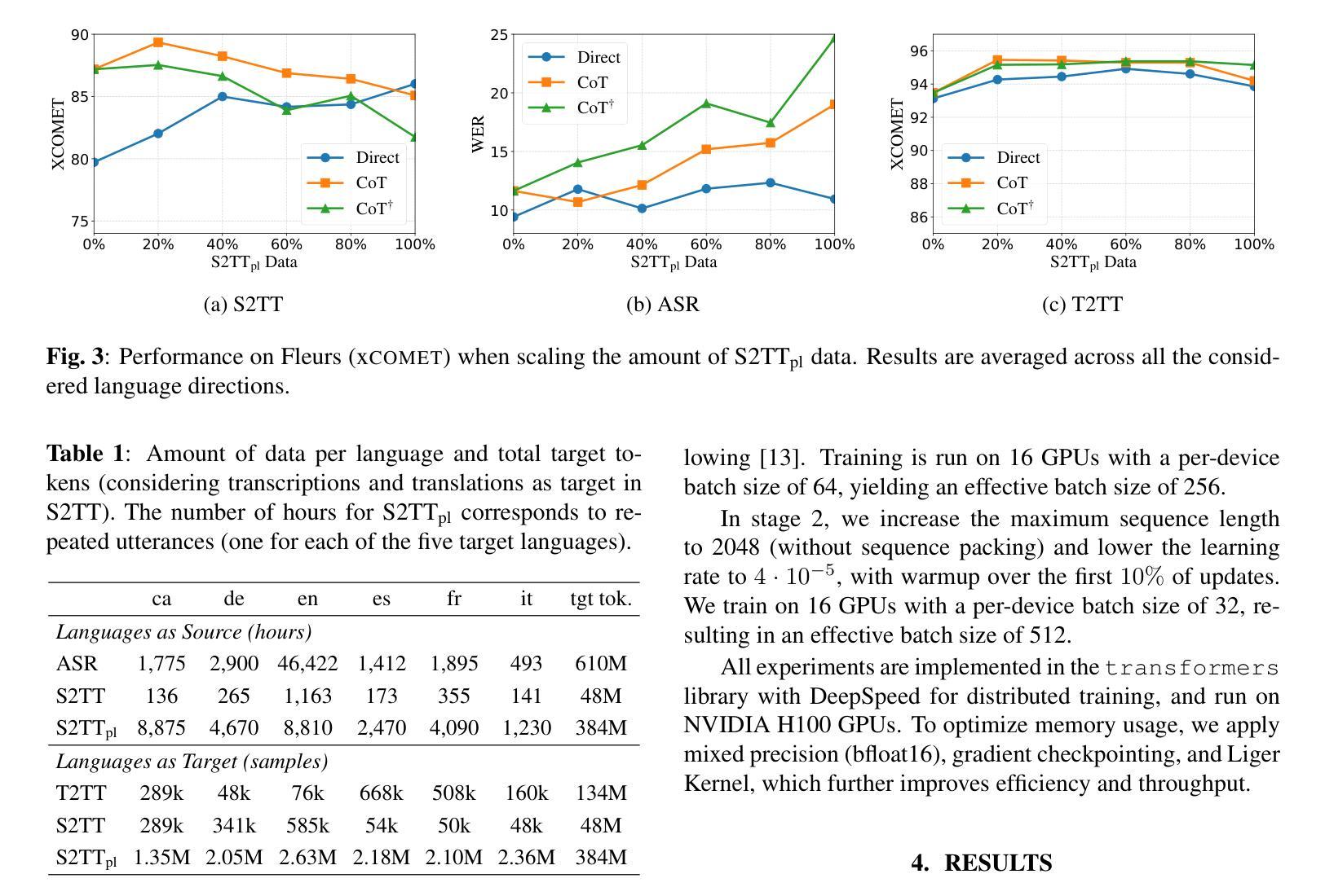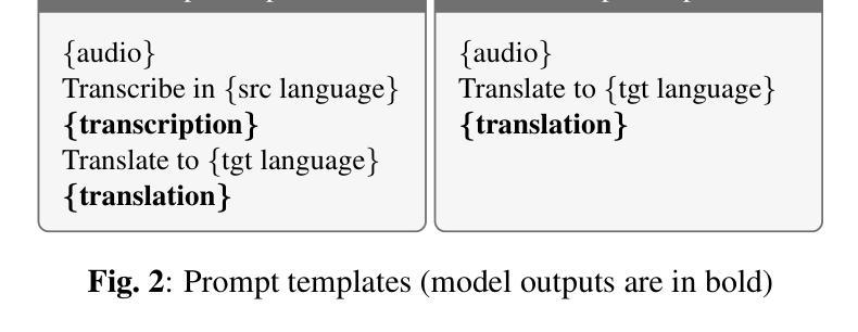 - 在本文中,作者通过伪标签方式将自动语音识别语料库翻译成六种欧洲语言,并在此数据集上训练了基于LLM的S2TT系统。
