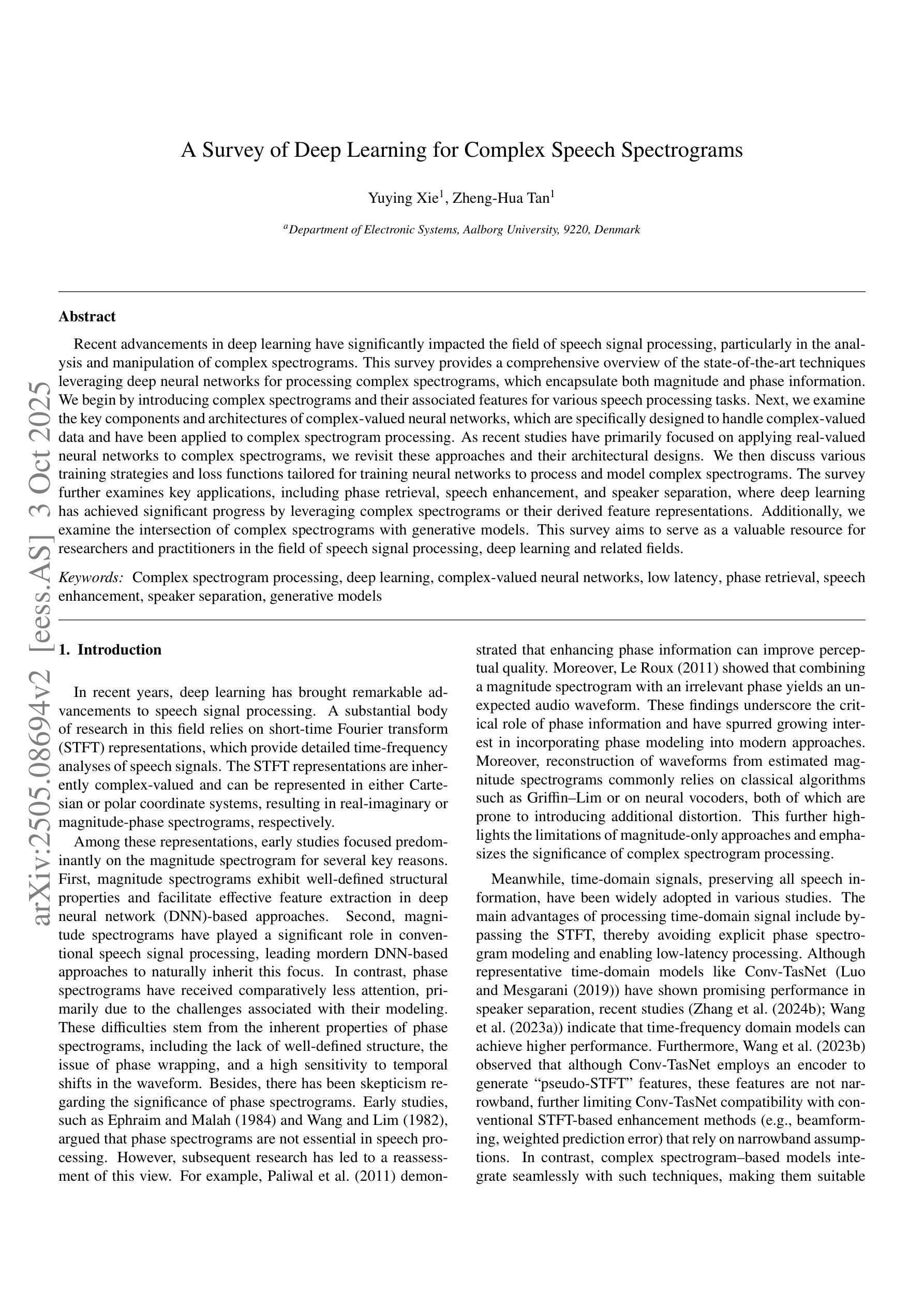 - 复杂谱图在相位恢复、语音增强和说话人分离等应用中取得显著进展。