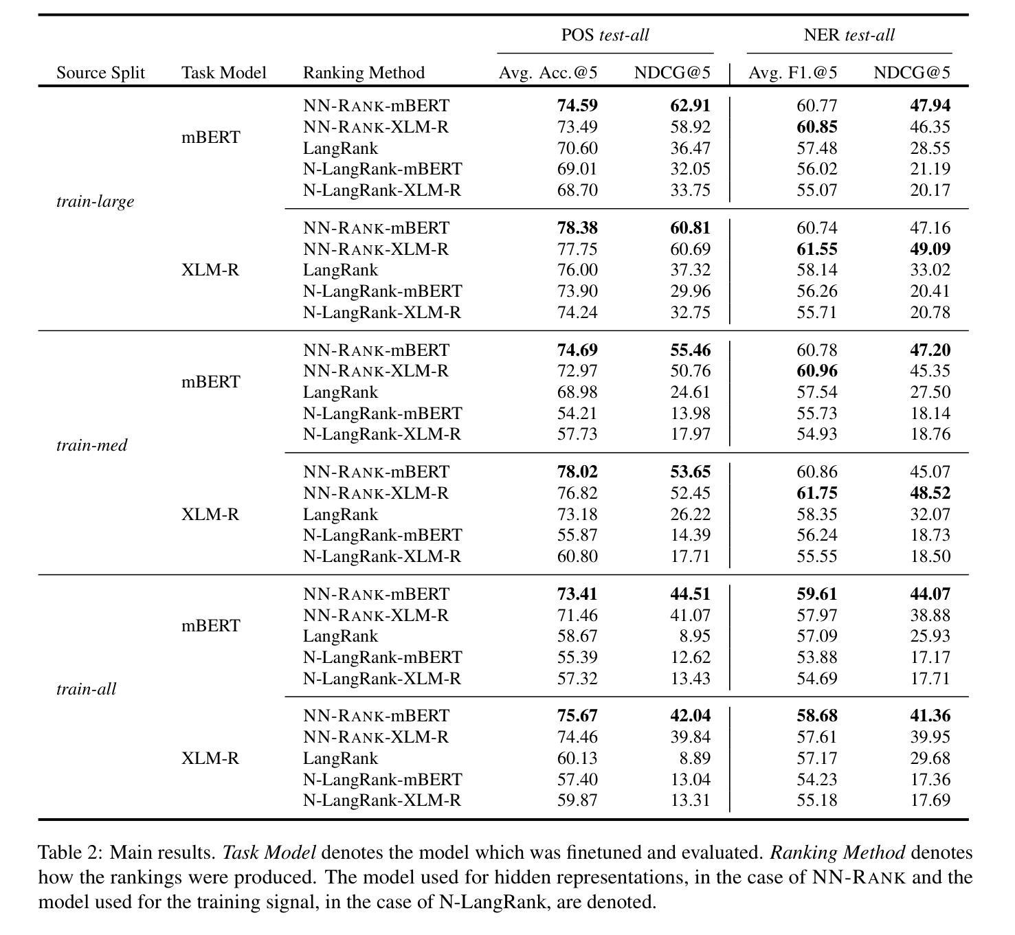 - NN-Rank在多种源语言与大量目标语言的POS和NER任务上表现优异。