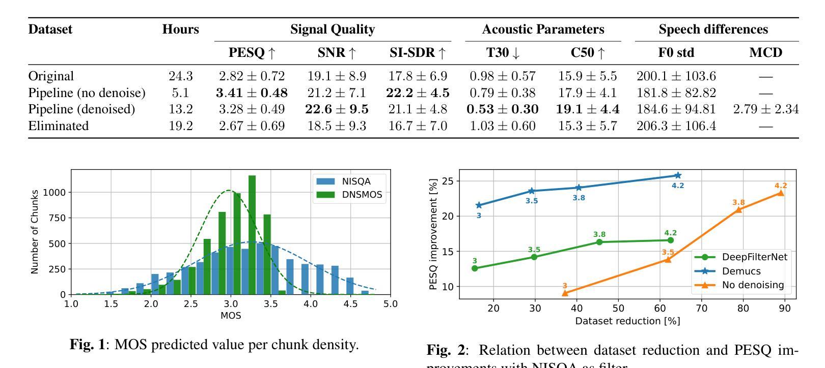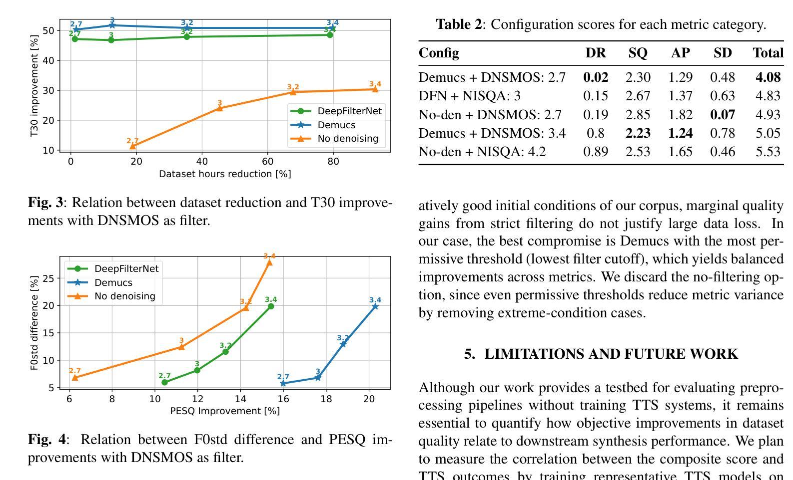 - 研究发现数据集大小、信号质量和语音保留之间存在权衡。