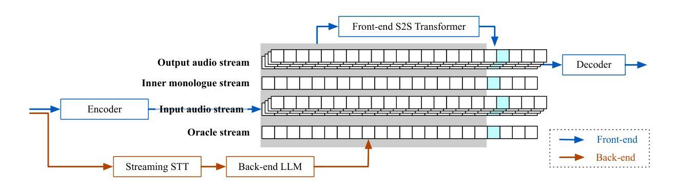 - 该混合架构通过后端大型语言模型(LLM)实时指导S2S模型的语音生成。
