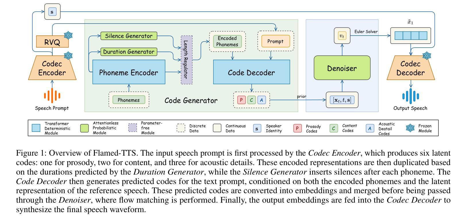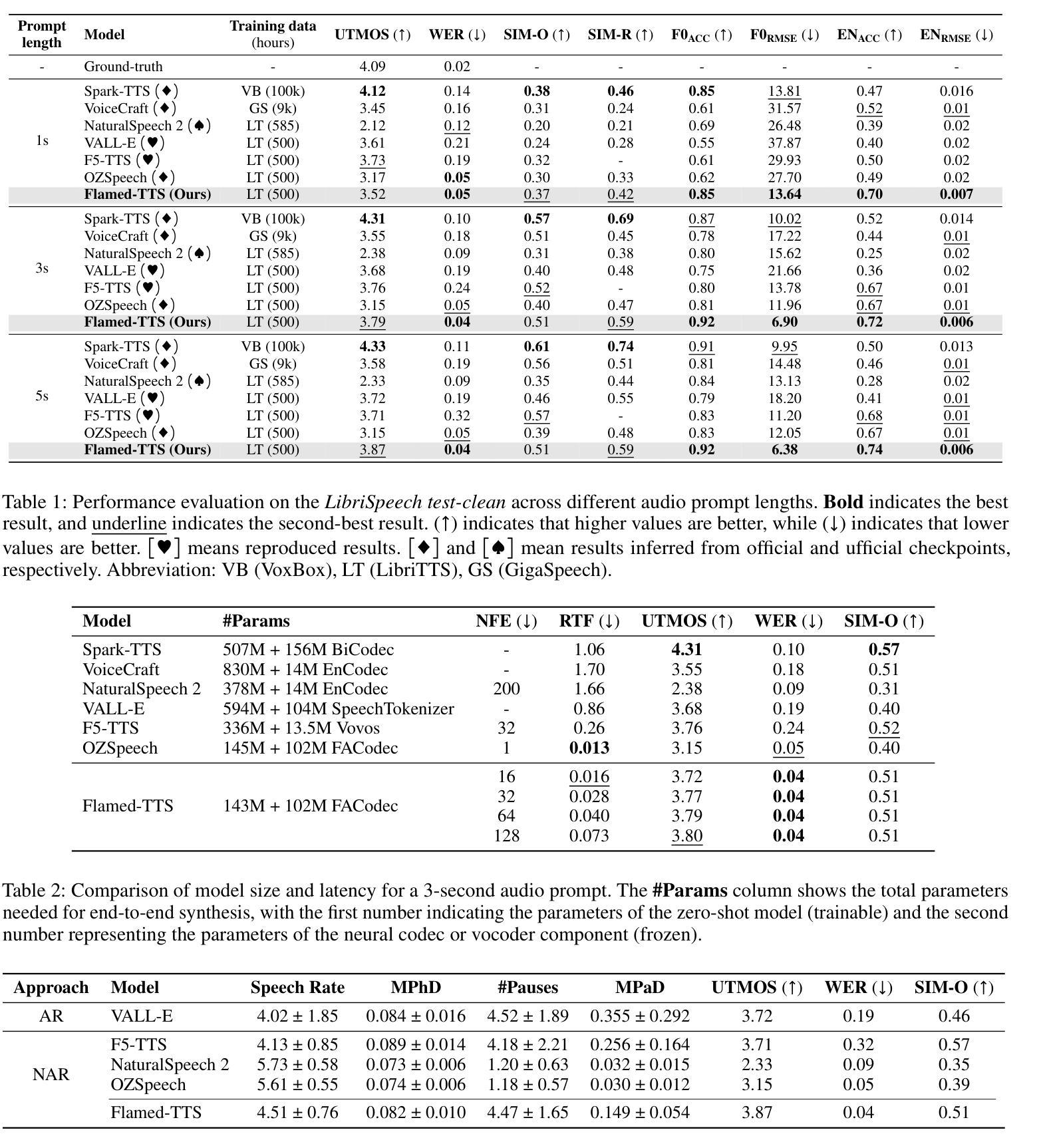 - Flamed-TTS框架旨在解决这些问题,强调低计算成本、低延迟和高语音保真度。