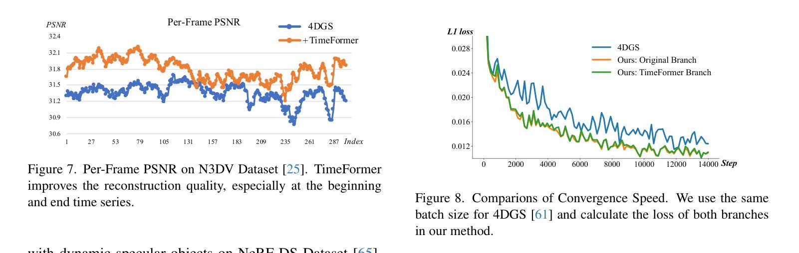- TimeFormer被设计为一个即插即用的模块,旨在增强现有可变形3D高斯重建方法的能力,使其能够隐式建模运动模式。