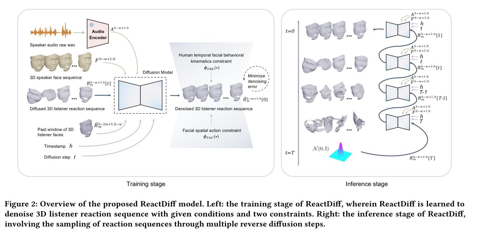 - ReactDiff框架通过结合时空面部运动学和面部动作单元依赖来生成逼真的面部反应。