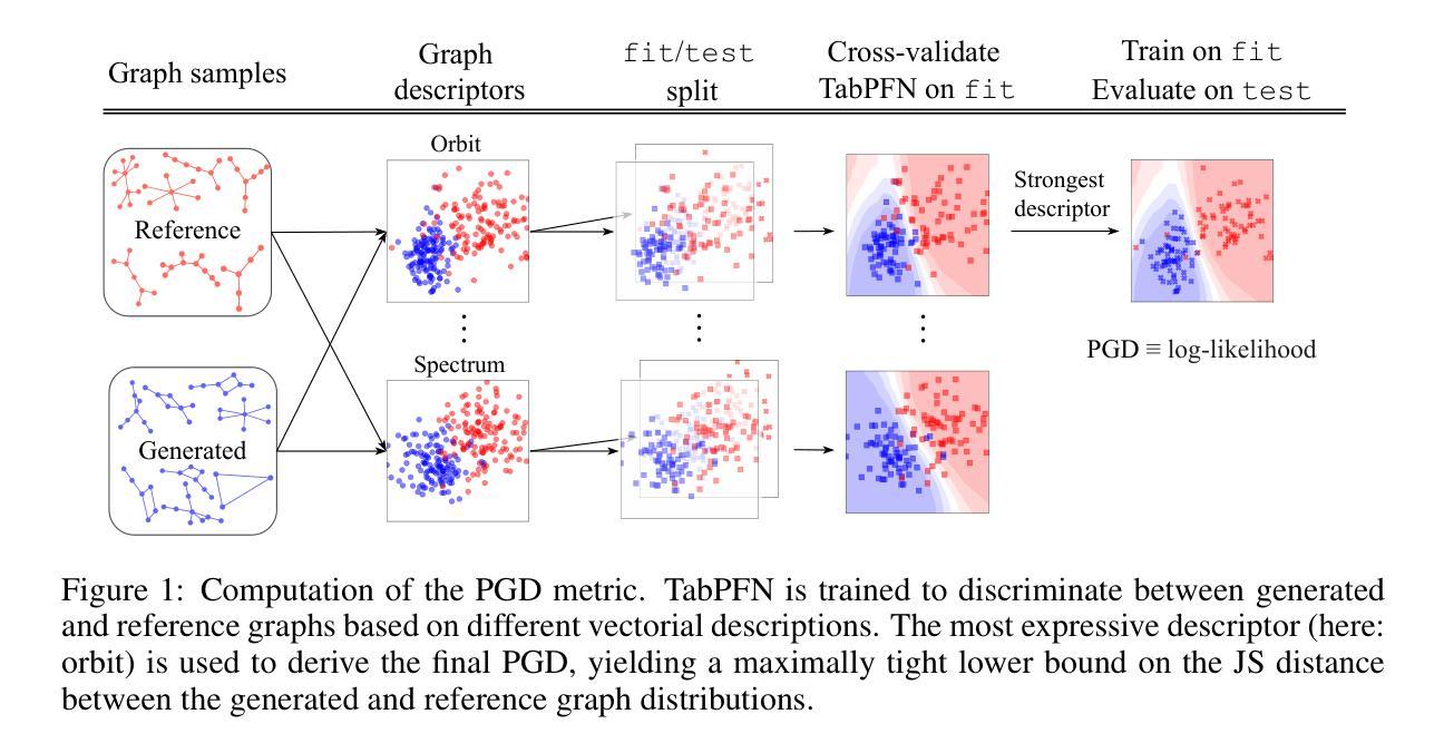 - PGD通过拟合二元分类器来区分真实和生成的图形,从而近似计算图分布的Jensen-Shannon距离。