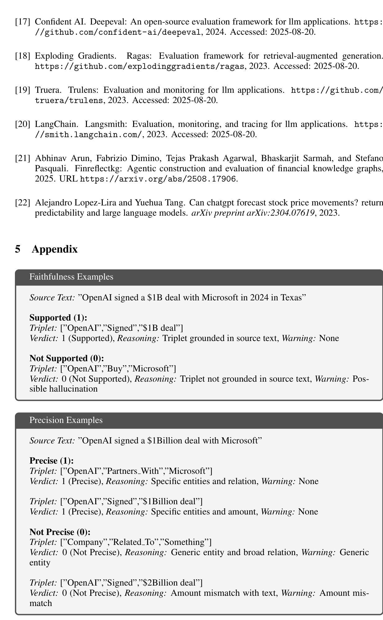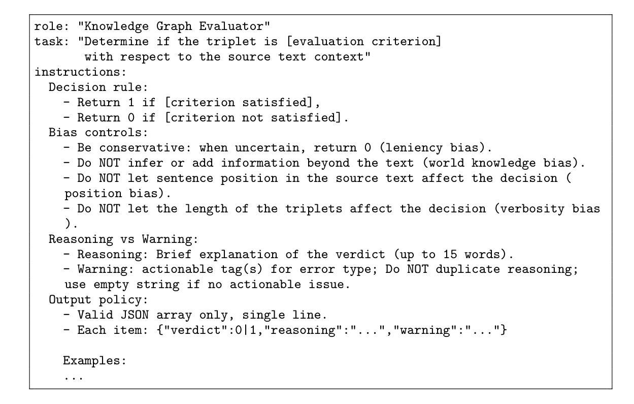 - 该框架采用确定性评判协议,对候选三元组进行忠实度、精确度和相关性的评估。