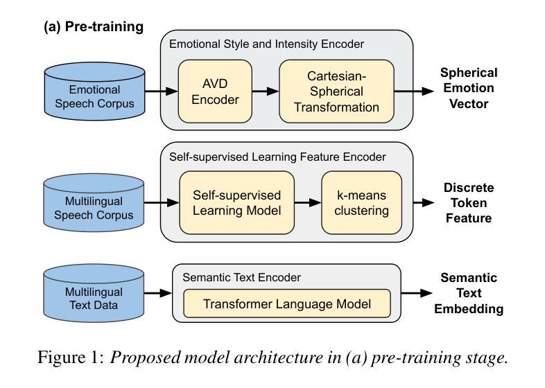 - 利用SSL进行语义和声学建模,实现有效的跨语言情感转移和稳健的说话人身份保留。