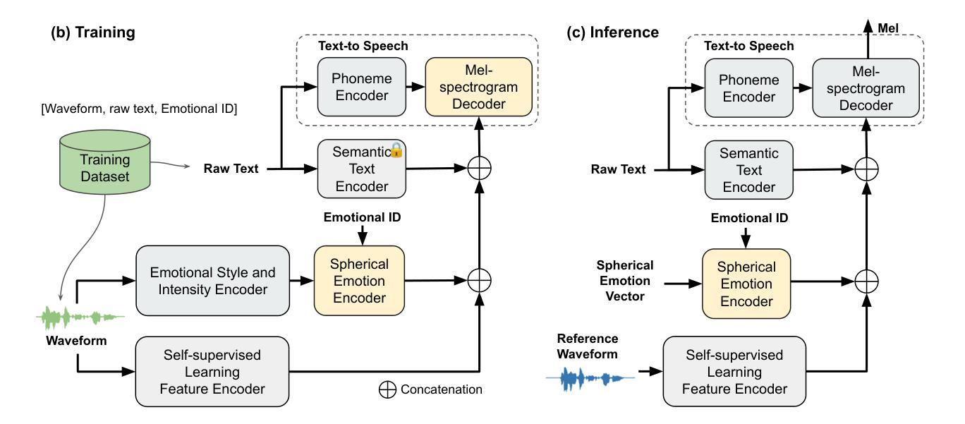- EmoSSLSphere是一个多语言情感TTS合成的新框架,结合了球面情感向量和自监督学习。