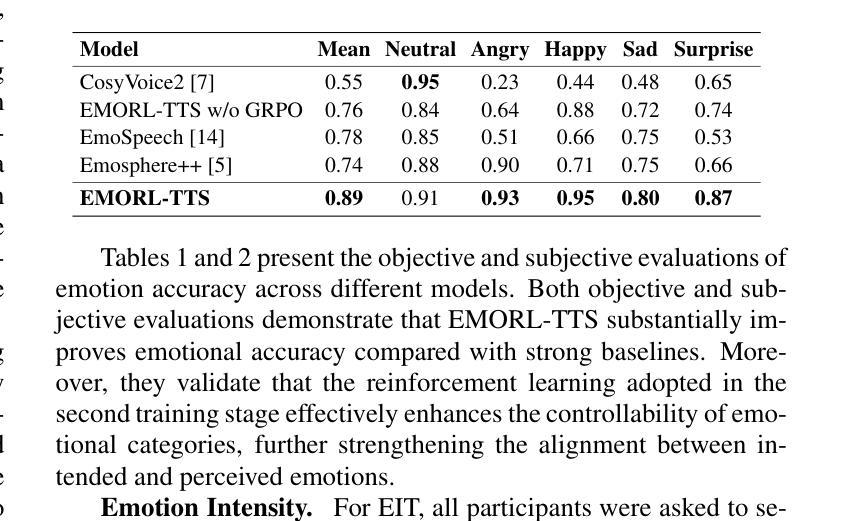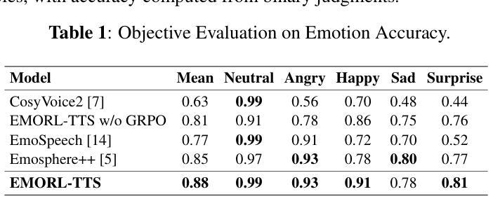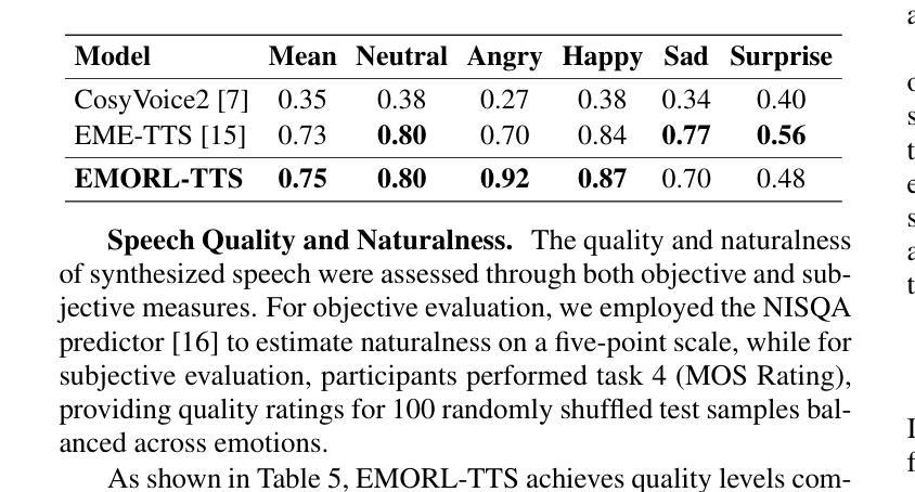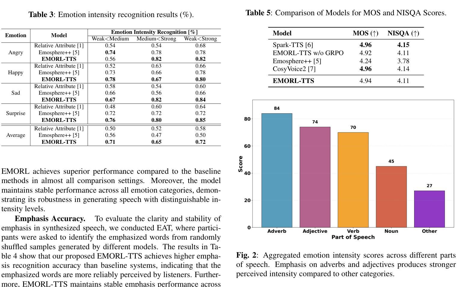 - EMORL-TTS提高了情绪准确性、强度差异和重点清晰度。