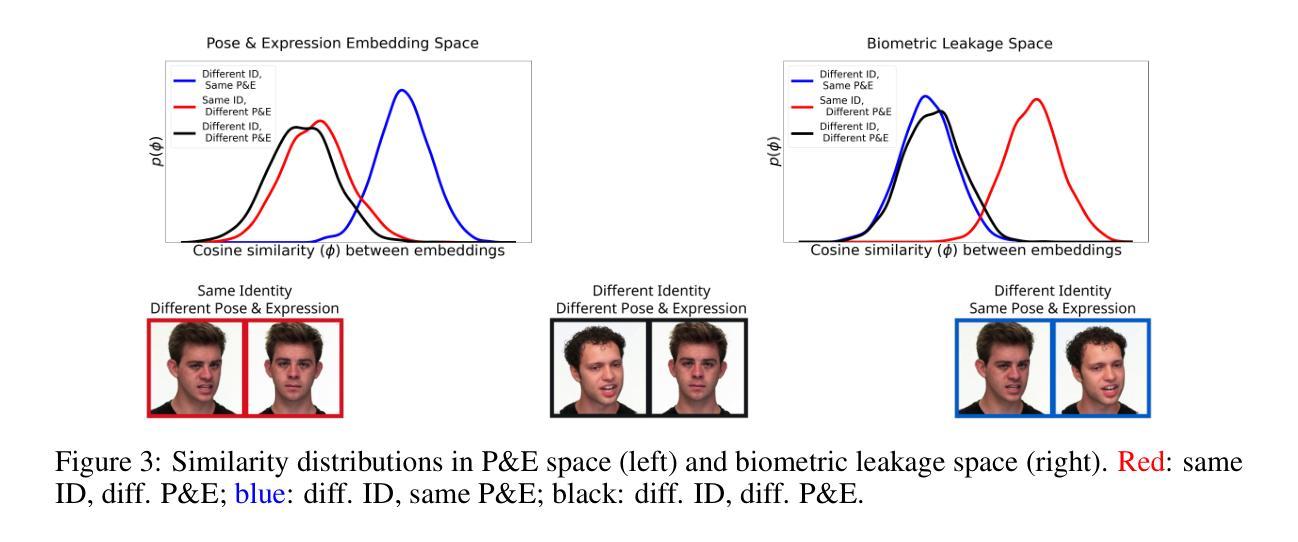 基于AI的说话人头视频会议系统通过发送紧凑的姿态表情潜值和重新合成RGB来降低带宽,但这一潜值可被操纵,使得攻击者可以在实时中劫持受害者的外貌。由于每一帧都是合成的,因此深度伪造和合成视频检测器完全失效。为解决这一安全问题,我们利用了一个关键观察结果:姿态表情潜值本身就包含了驱动身份的生物识别信息。因此,我们引入了首个无需查看重建RGB视频的生物识别泄露防御方法:一个姿态调节的大间隔对比编码器,它在传输的潜值内隔离持久的身份线索,同时取消短暂姿态和表情。在这种分离嵌入上进行简单的余弦测试可在视频渲染时标记出非法身份交换。我们在多个说话人头生成模型上的实验表明,我们的方法始终优于现有的操纵防御措施,可实时操作,并对超出分布范围的场景具有良好的泛化能力。
