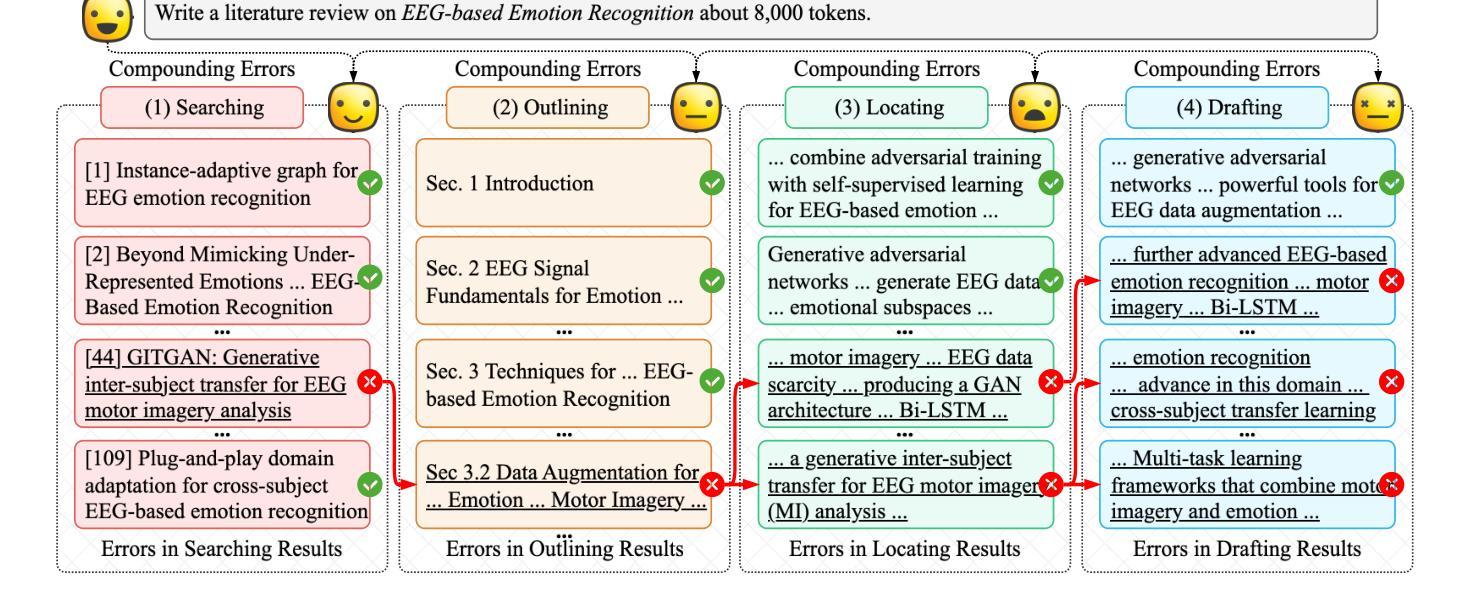 - 长文本文献综述生成存在累积误差问题,对最终输出的忠实度造成严重影响。