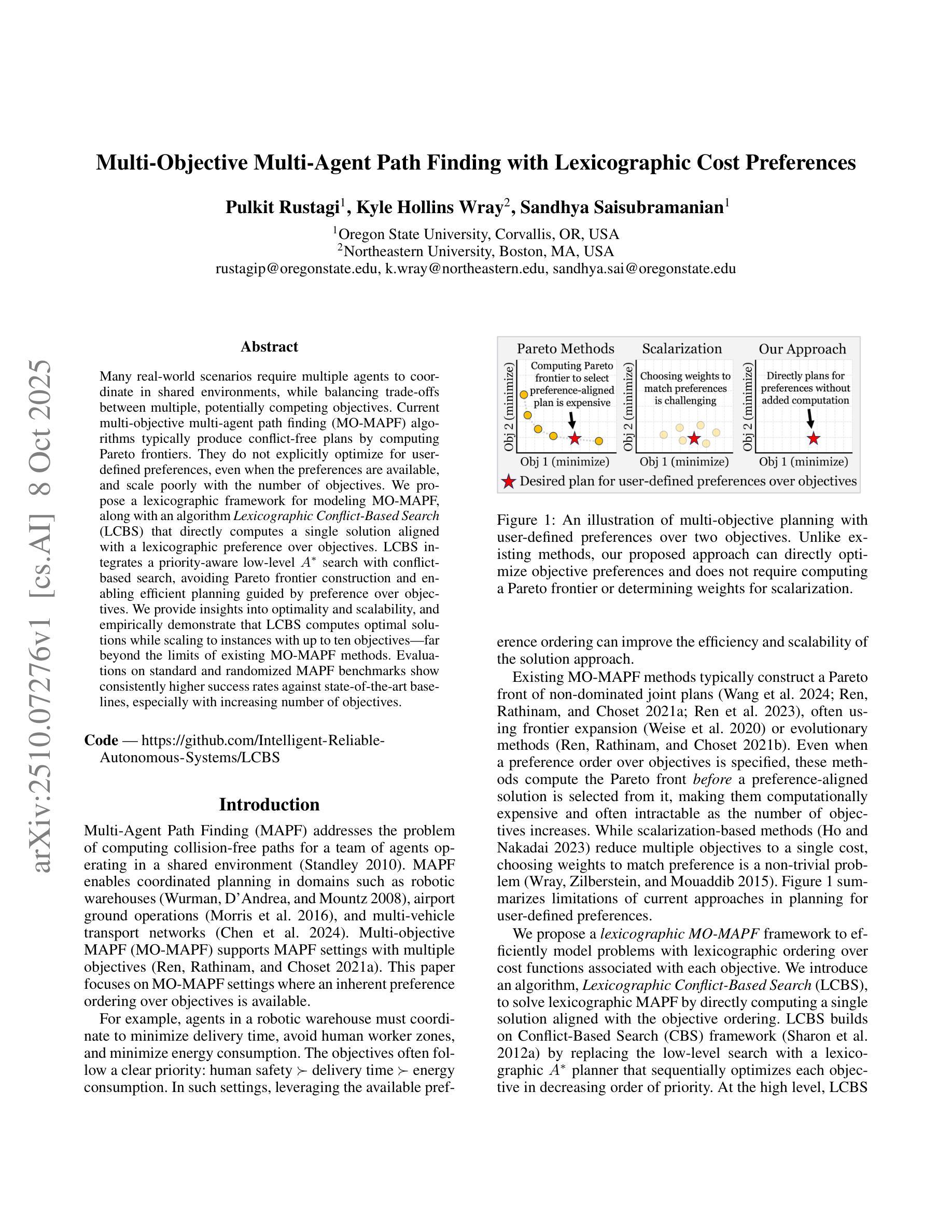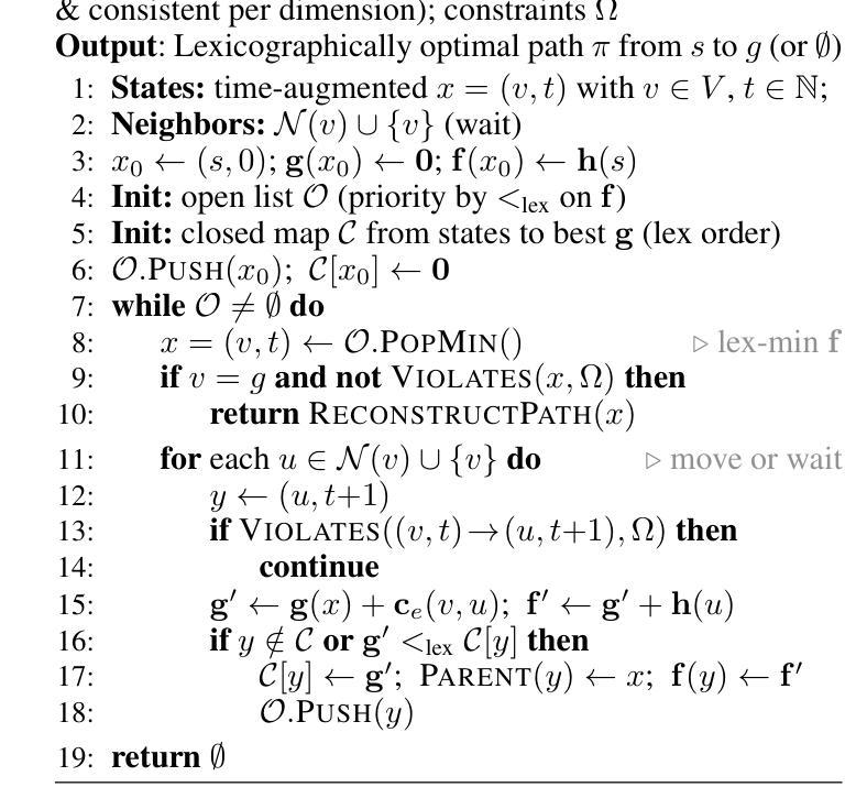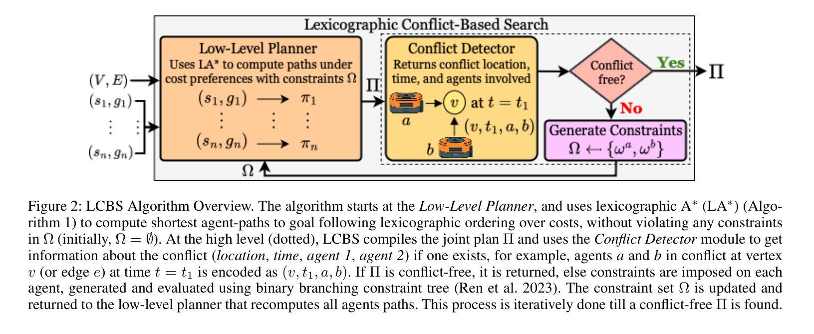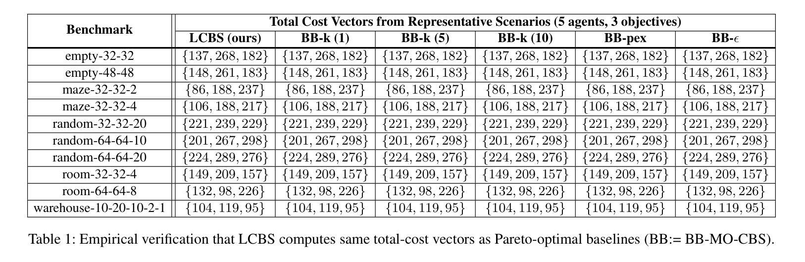 - 词法编码冲突搜索算法(LCBS)结合了优先级感知的低级A^搜索和基于冲突搜索的技术,避免计算帕累托前沿。