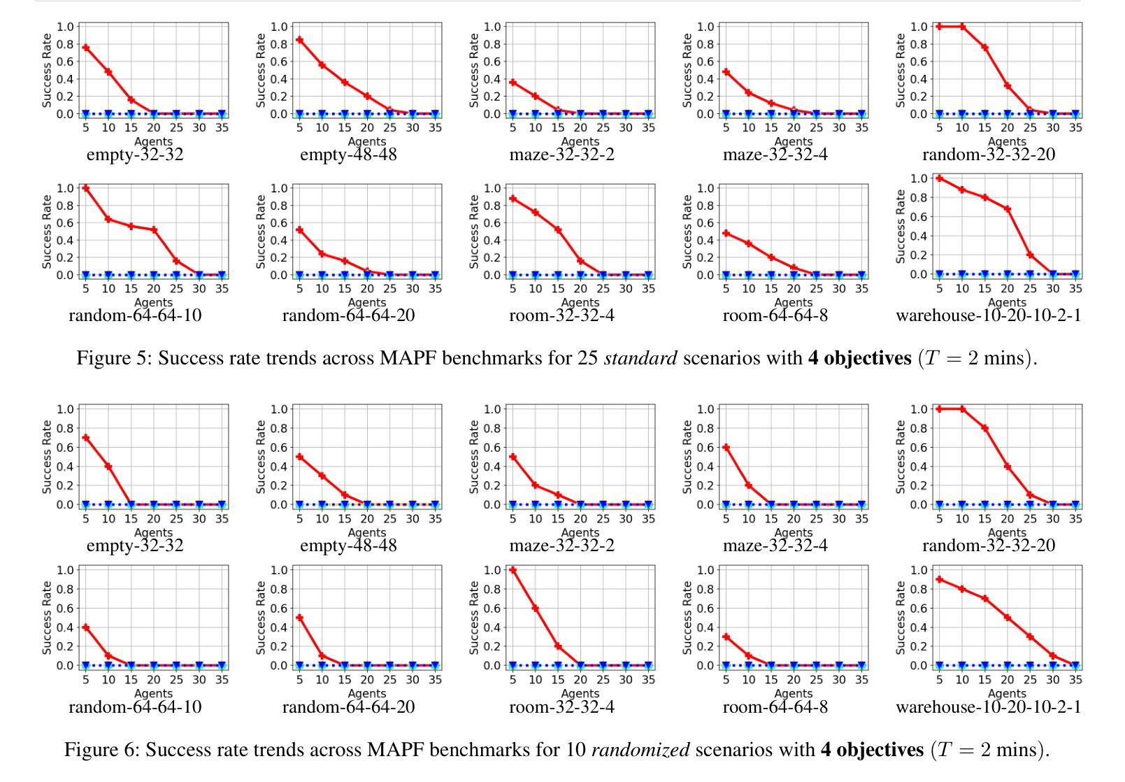 - LCBS在标准化和随机化的MAPF基准测试上表现出较高的成功率。
