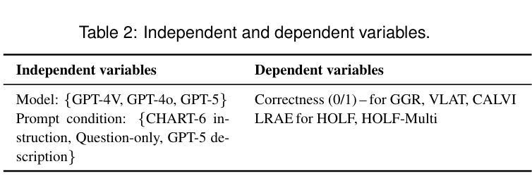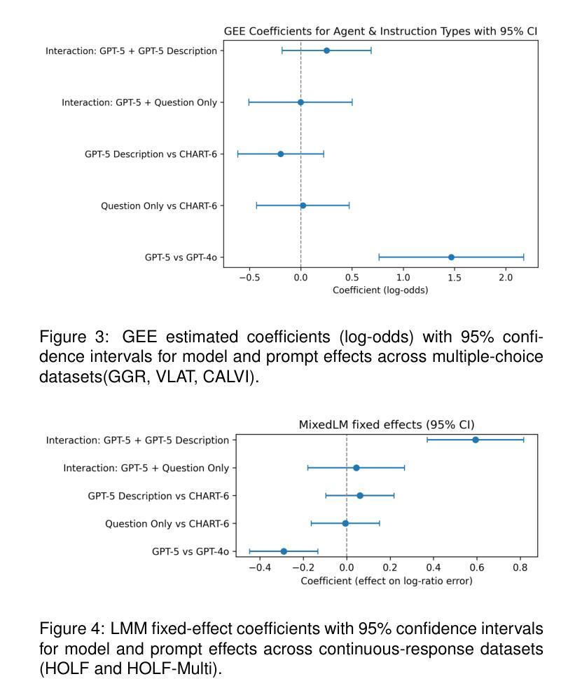 我们对零样本大型语言模型(LLM)在图表阅读任务中的影响进行了定量评估,并探讨了提示的使用效果。我们要求LLM回答107个可视化问题,以比较GPT-5和GPT-4V在多模态困难图像实例上的推理准确性,其中GPT-4V未能给出正确答案。我们的结果表明,模型架构对推理精度起主导作用:GPT-5大大提高了精度,而提示变体只产生了微小影响。本工作的预注册信息可在此处查看:链接;谷歌驱动材料可在此处查看:链接。