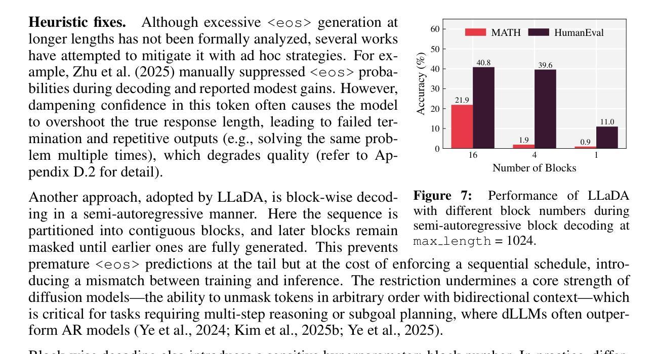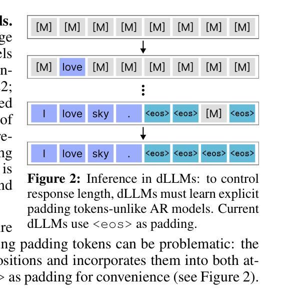 扩散大型语言模型(dLLMs)作为对自回归模型的有前途的替代方案出现,具有灵活的生成顺序和强大的复杂推理任务性能。然而,指令调优的dLLMs存在一个被称为“溢出”的关键漏洞:随着分配序列长度的增加,响应却变得较短,导致过早终止或退化为一串的“