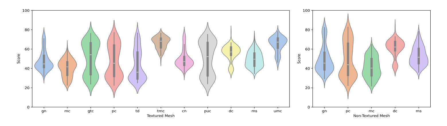 - 提出了一种新型的多模态模型方法——动态网格评分器(DynaMesh-Rater),能够评估纹理和非纹理的4D网格的质量。