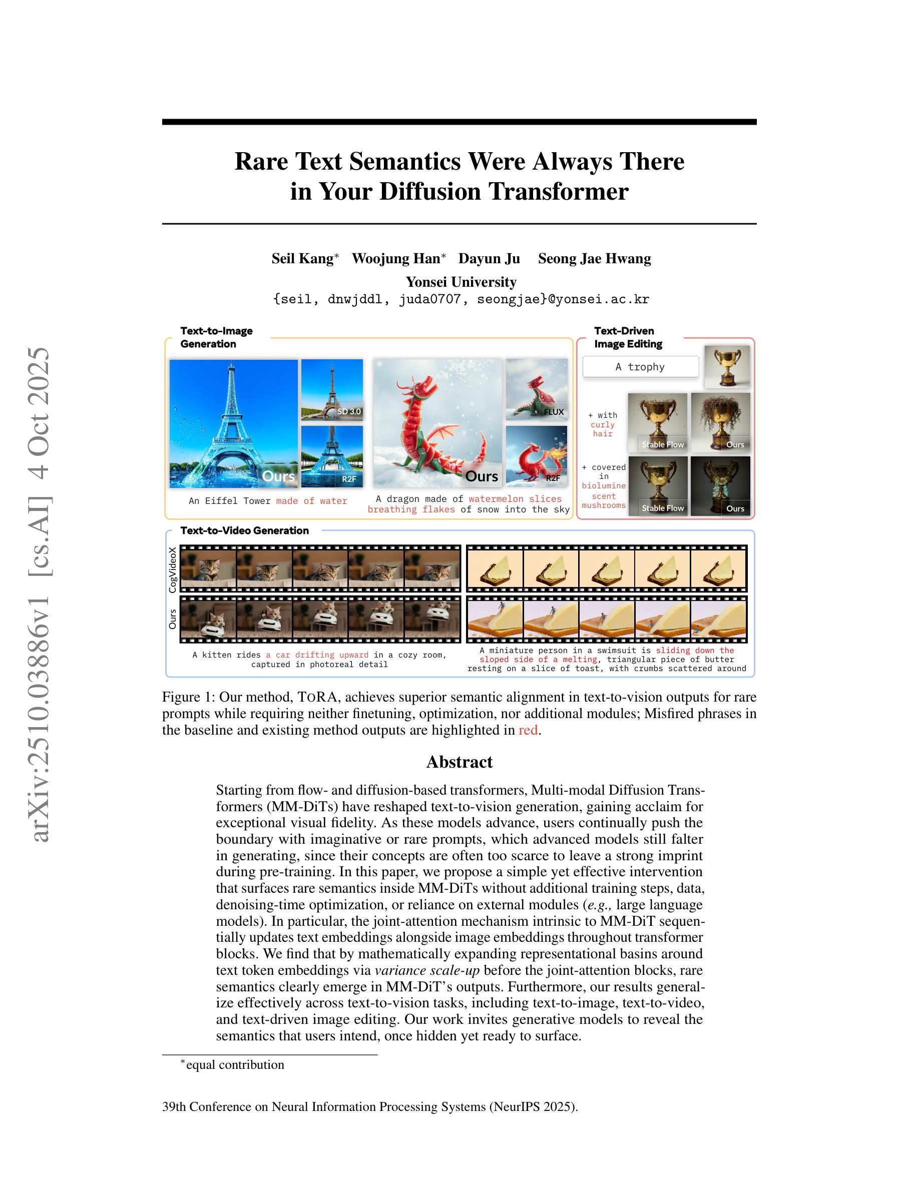 - 该方法有效跨多种文本到视觉任务推广,包括文本到图像、文本到视频以及文本驱动的图像编辑。