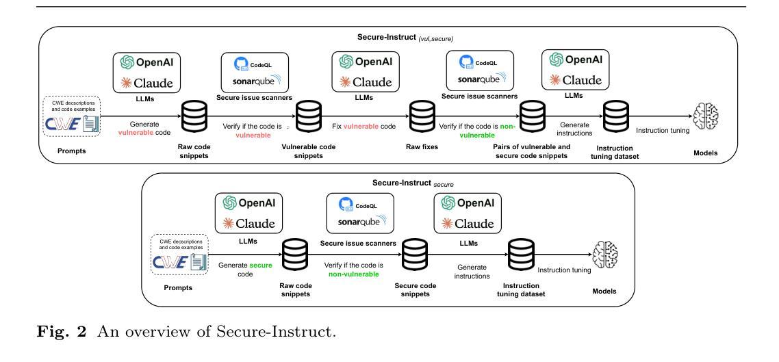 - Secure-Instruct框架通过自动合成高质量的安全和漏洞代码示例,并生成微调指令来提升LLM的性能。