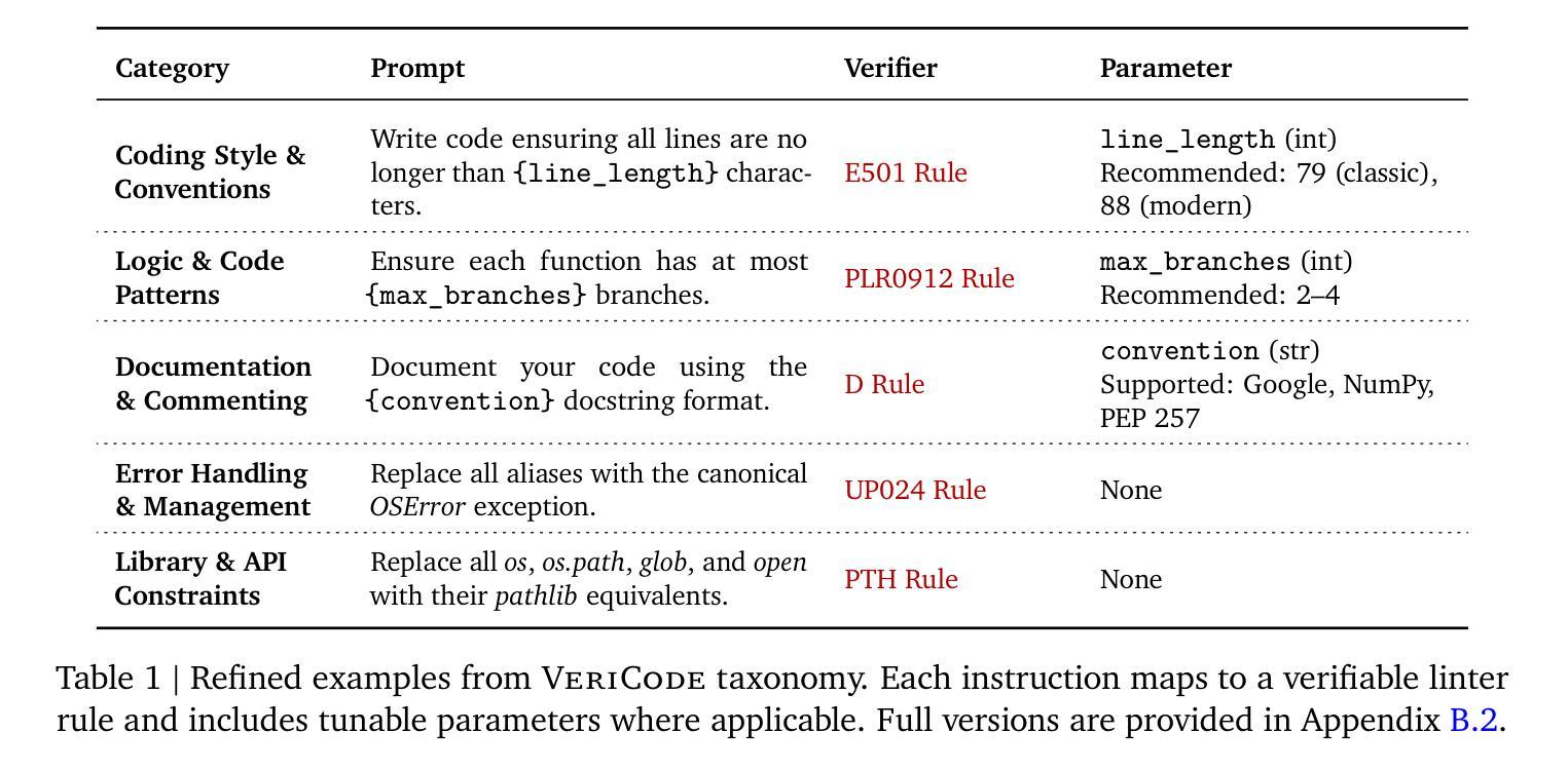 - 提出了VeriCode分类,包含30种可验证的代码指令及其验证器。