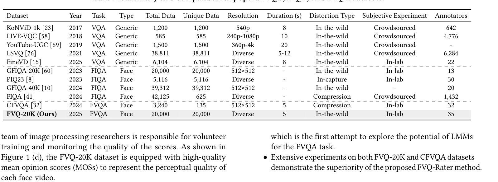 - 脸部视频质量评估(FVQA)是社交媒体时代的重要研究领域,因为脸部视频是主流内容。