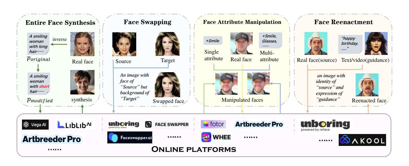 - 深度伪造技术能创建超逼真的人脸合成图像和视频,对社交媒体的真实性构成威胁。