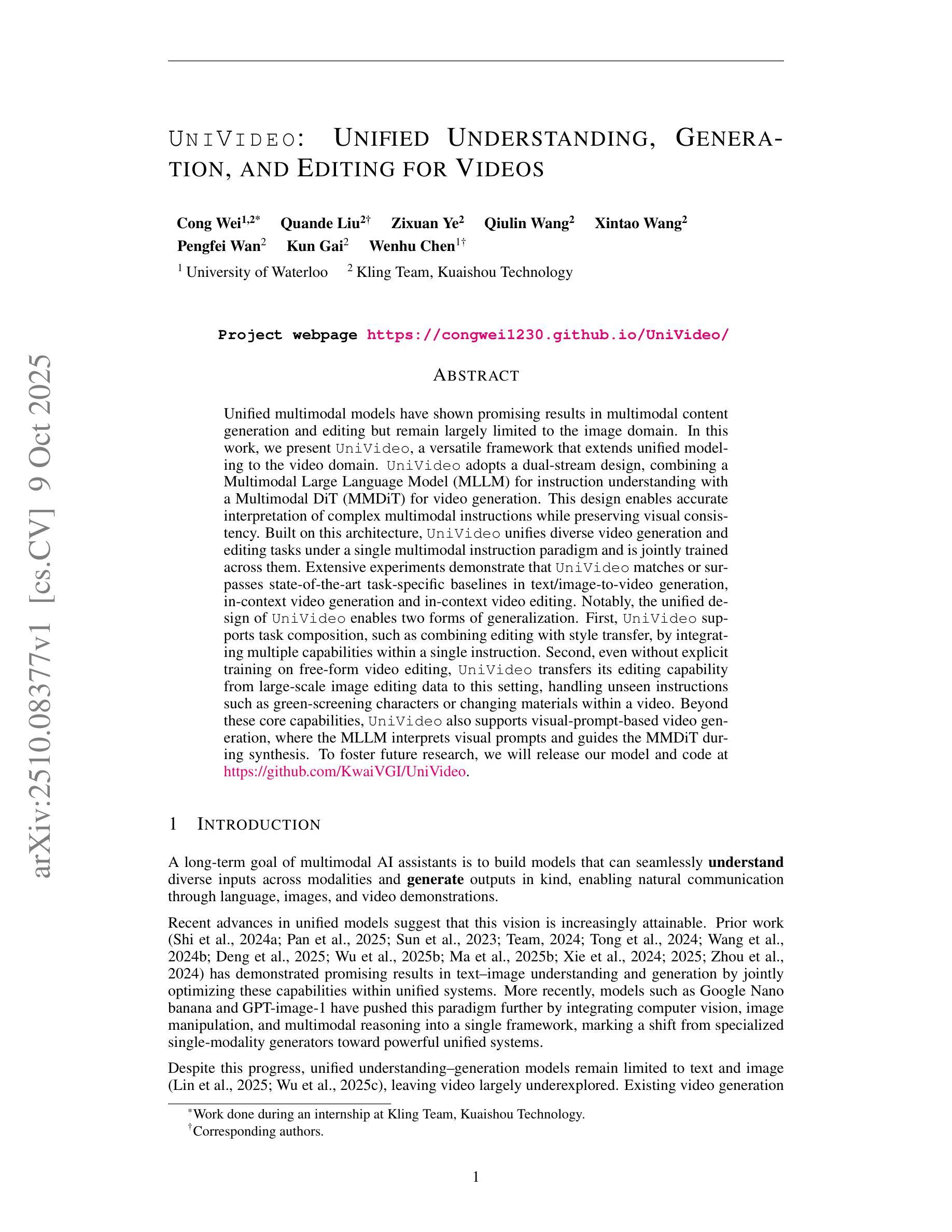 PDF Project Website https://congwei1230.github.io/UniVideo/