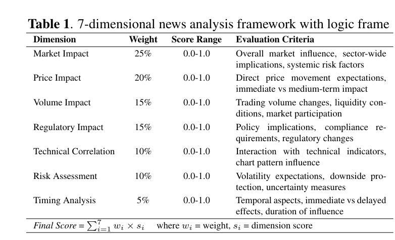 - 信息保留的新闻分析系统使用大型语言模型量化市场影响、监管影响、交易量动态、风险评估、技术关联和时间效应。