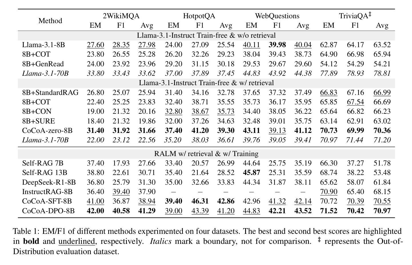 - CoCoA在开放域问答和多跳问答任务中表现优越。