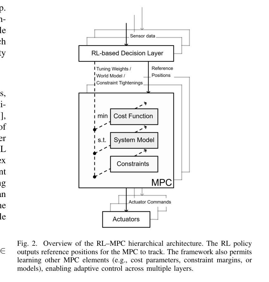 - 提出的层次框架结合了强化学习与模型预测控制。