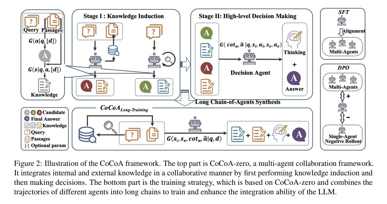 - Collaborative Chain-of-Agents框架旨在增强模型内部参数知识和外部检索知识的协同作用。