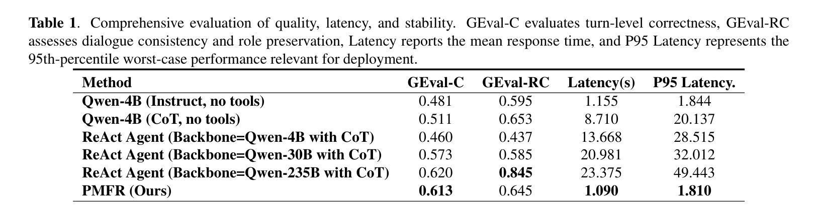 - 在TopiOCQA上的评估显示,PMFR在减少延迟方面表现出色,同时保持高质量的反应。