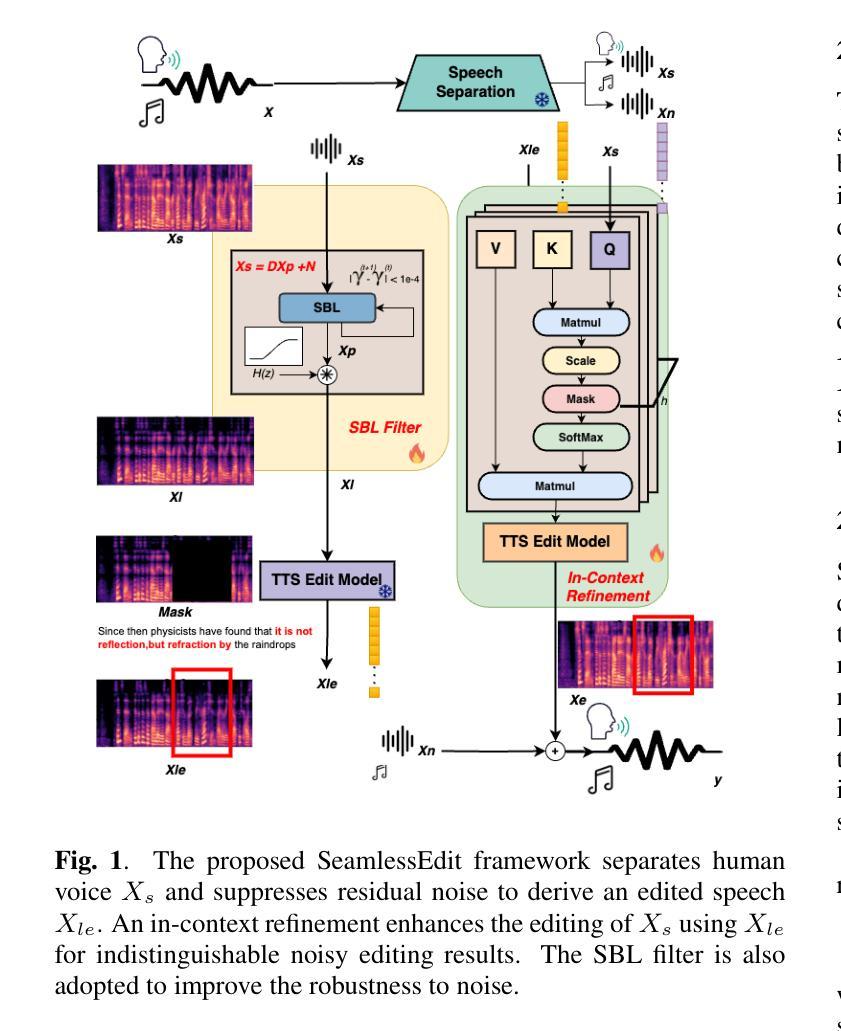 - 本研究提出一种用于噪声语音编辑的SeamlessEdit框架。