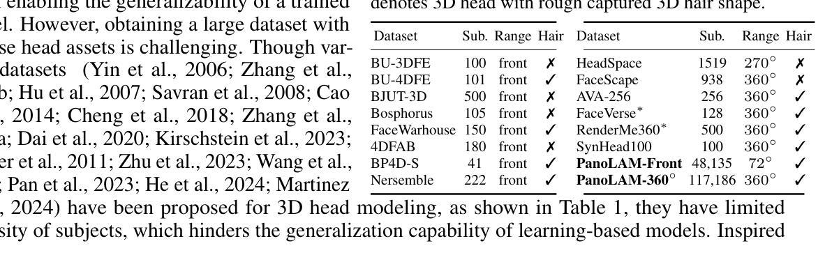 基于单张未摆姿势的图像,我们提出了一种前馈框架,用于高斯全头合成。该框架能够在单个前向传递中从单个未摆姿势的图像重建高斯全头模型,从而实现了快速的重建和渲染。为了解决缺乏大规模3D头部资产的问题,我们提出了一个基于训练好的3D GANs的大规模合成数据集,并使用仅合成数据进行框架训练。为了进行高效的高保真生成,我们引入了从粗到细的高斯头部生成管道,其中FLAME模型的稀疏点与图像特征通过变压器块进行特征提取和粗略形状重建,然后进行密集化以实现高保真重建。为了充分利用预训练的3D GANs中的先验知识进行有效的重建,我们提出了一个双分支框架,该框架有效地聚合了结构化的球面triplane特征和无结构的点基特征,以实现更有效的高斯头部重建。