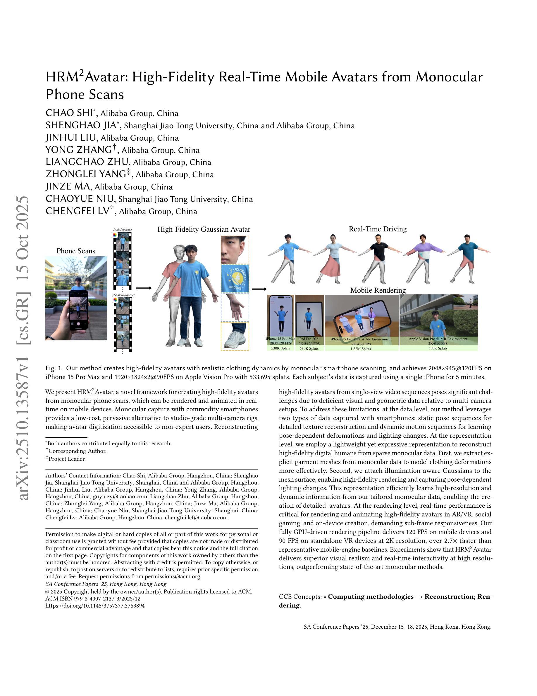 - HRM$^2$Avatar框架允许通过低成本的单目手机扫描创建高保真虚拟人。